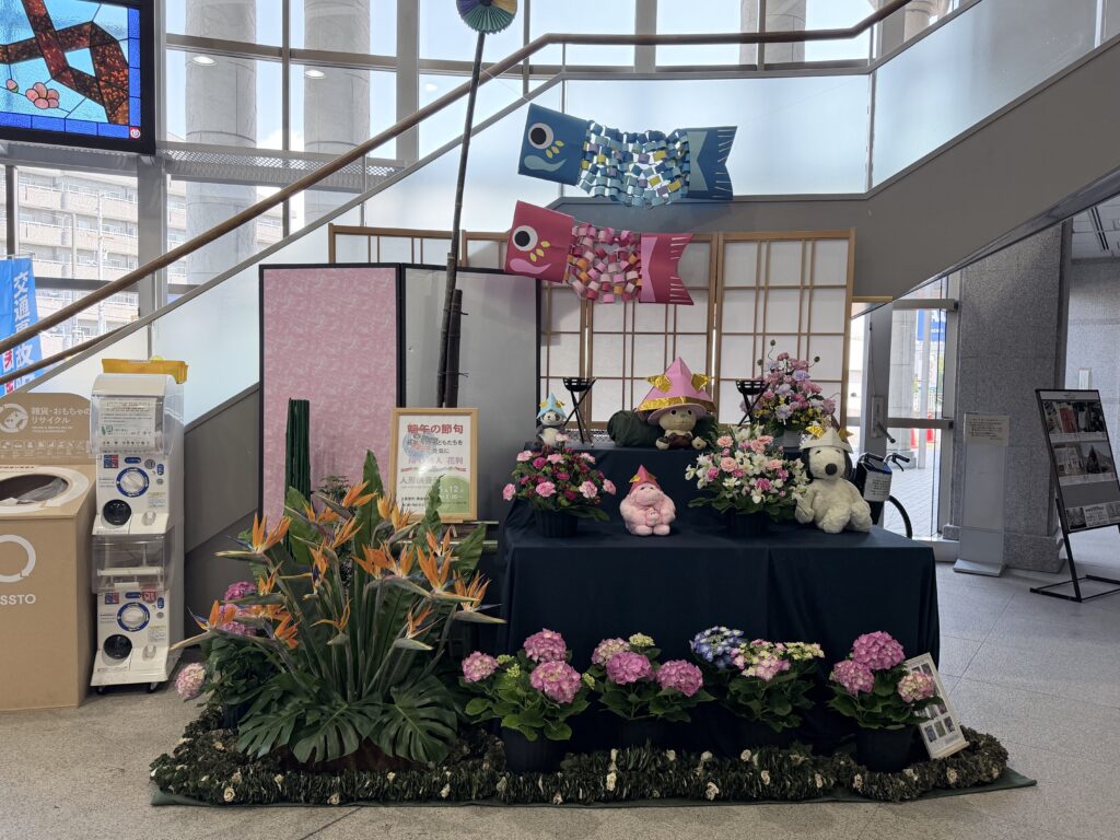 2026.04.11 ブログ 花で藤井寺の子どもたちを元気に! こんにちは(^^) 藤井寺市役所へこどもの日の花飾りをさせていただきました♪ ゴクラクチョウにアジサイ、 こいのぼりに風車、 スヌーピーにトニートニーチョッパー 可愛いぬいぐるみが兜を被って 端午の節句仕様になっています 4/24(金)まで飾っているので ぜひ近くに行かれた際は覗いていただければ 幸いです♪ SHAREシェアする
